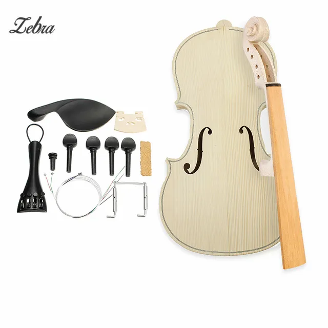 Best Price Zebra 4/4 Size DIY Natural Solid Wood Violin Fiddle Kit with Spruce Top Maple Back Fiddle For Violin Musical Instruments Lover